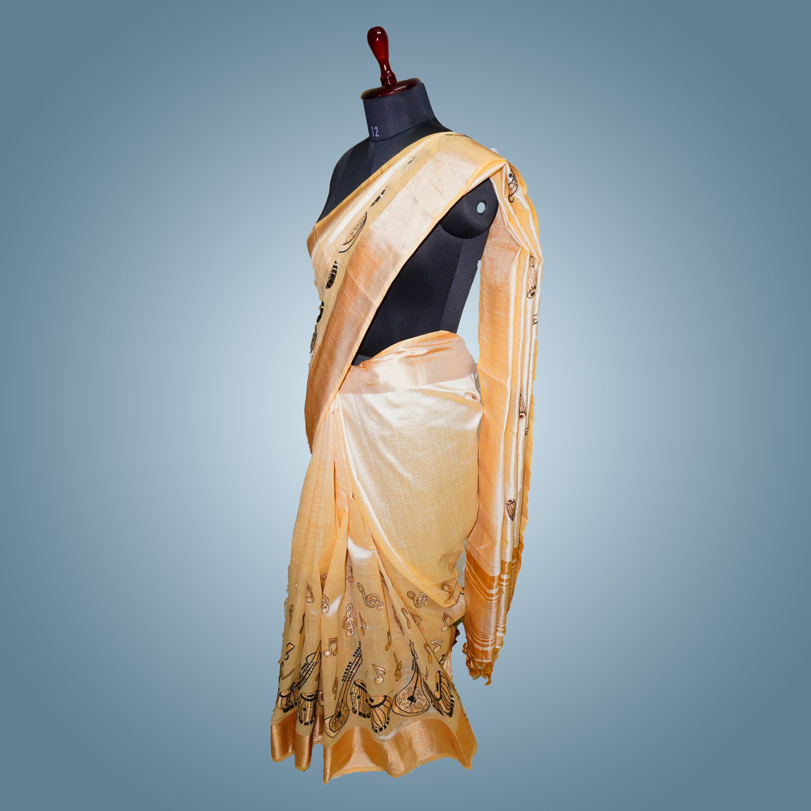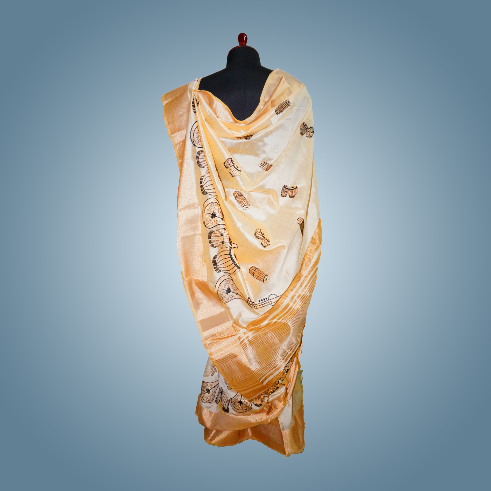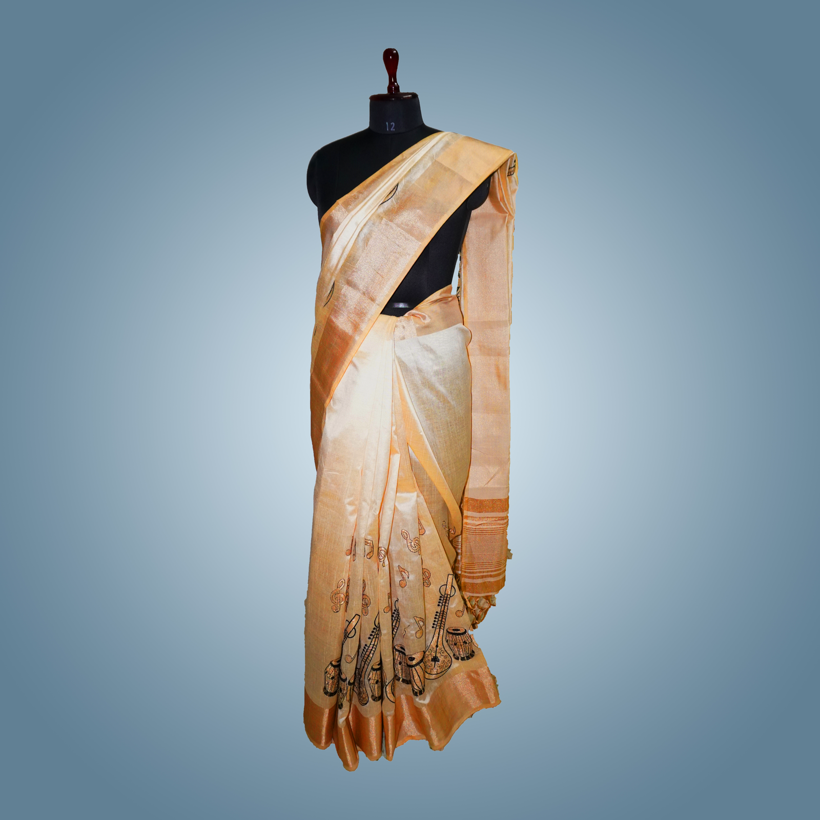 Indulge in timeless elegance with this off-white silk saree, beautifully adorned with intricate golden and black embroidery that exudes sophistication and charm. Crafted from premium silk fabric, it offers a luxurious feel with a smooth texture and a graceful drape, making it perfect for weddings, festive occasions, and special celebrations. The subtle off-white base is elevated by the rich embroidery work, creating a striking yet refined look. This saree comes with a matching unstitched silk blouse piece, allowing you to tailor it to your preferred style and fit. Measuring 5.5 meters in length with an additional 0.8-meter blouse piece, it ensures versatility and comfort. To maintain its exquisite finish and intricate detailing, dry cleaning is recommended.